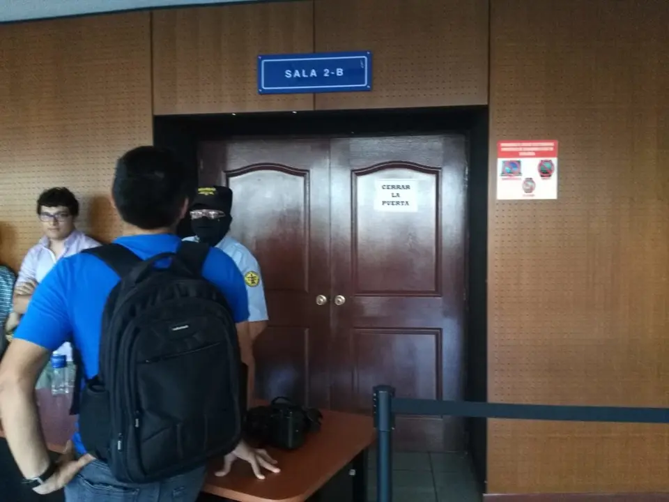 El Tribunal Segundo de Sentencia ha iniciado decidió retirar de la sala de audiencias a la prensa que cubre el juicio debido a que este testimonio tiene reserva debido a que este testigo con criterio de oportunidad tiene otro proceso abierto en otro tribunal.