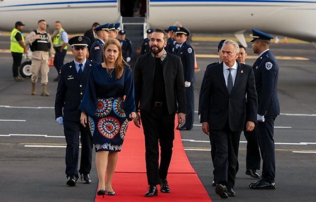 El Presidente Bukele y su comitiva oficial fueron recibidos por la vicepresidenta costarricense, Mary Munive; el ministro de Relaciones Exteriores y Culto, Arnoldo Andre Tinoco; el ministro de Comunicaciones, Arnold Zamora Miranda; y el director de Protocolo del Ministerio de Relaciones Exteriores, Michael Chartier.