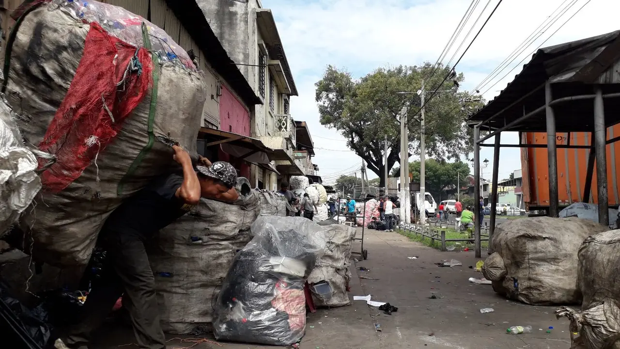 Al igual que este ciudadano, son muchas las personas que llegan todos los días a vender variedad de materiales inservibles a los negocios de reciclaje y chatarrería en la Avenida Independencia, al oriente de San Salvador, para obtener dinero.