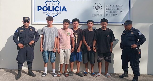 Los detenidos fueron identificados como Brayan Ernesto Molina Iraheta, de 23 años de edad; José Esteven Guevara Granadeño, de 19 años; Jeison Herrera Vallejos, de 18 años; Yelter Esaú Martínez Flores, de 17; y Levis Josué Martínez Flores, de 16 años.