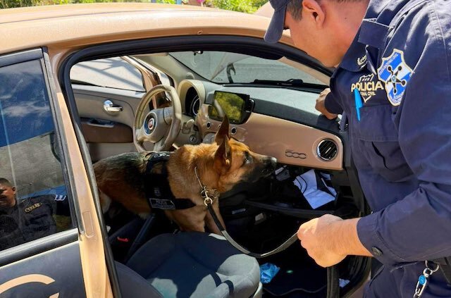 Dos hombres de nacionalidad guatemalteca fueron capturados en flagrancia por agentes de la División Antinarcóticos (DAN) de la Policía Nacional Civil (PNC) luego de que el perro K9 Mirko detectó una caleta dentro del vehículo en el se transportaban donde llevaban ocultos dos paquetes de cocaína valorados en unos $50,228.