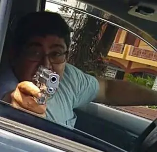 En redes sociales han circulado fotos del sujeto apuntando con un arma a quienes obstaculizan su paso.