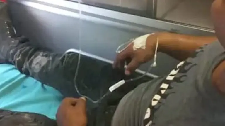 Los primeros en llegar a la escena fueron los miembros de Cruz Verde, que subieron a la valla para alcanzar al hombre, lo bajaron y fue trasladado a un centro asistencial